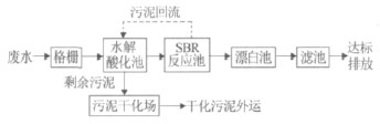 廢水主要來自中藥加工過程,其中含有大量大顆粒固體污染物,因此將廢水先送入格柵井去除粗大顆粒。格柵井內設粗細兩道格柵,以分離粗大顆粒和較細顆粒。預處理后的廢水進入水解酸化池,水中難降解的大分子有機物在厭氧微生物作用下進行消化分解,成為易降解的小分子有機物,可提高后續工藝的CODCr和BOD5去除率。水解酸化池出水進入SBR 池曝氣,水中的有機物在好氧微生物作用下繼續分解為CO2和H2O,使廢水達標排放。SBR 池產生的污泥由污泥泵排入水解酸化池進行消化減量,剩余污泥用污泥泵定期排入污泥干化場,晾干后外運填埋。
