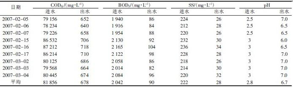 該系統(tǒng)從2007 年1 月開始調(diào)試運(yùn)行,至2007年2 月運(yùn)行正常,出水水質(zhì)趨于穩(wěn)定,各項(xiàng)指標(biāo)達(dá)到甚至超過設(shè)計(jì)要求。監(jiān)測處理出水的水質(zhì)見表2。