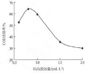 圖2 H2O2投加量對Fenton 氧化處理效果的影響