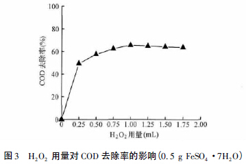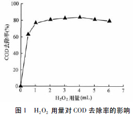 2.1 H2O2用量對COD 去除率的影響
