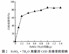 2.2 Fe2+投加量對COD 去除率的影響