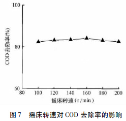 2.6 搖床轉速對COD 去除率的影響
