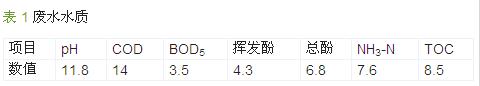 實驗用廢水取自某煤制氣工廠碎煤加壓氣化工藝水處理工段中進入脫酚氨裝置前的廢水,水質如 表 1 所示。