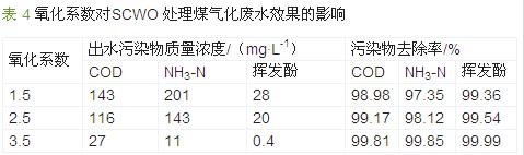 2.1.3 氧化系數對SCWO 處理煤氣化廢水效果的影響