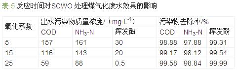 2.1.4 反應時間對SCWO 處理煤氣化廢水效果的影響