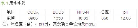 實驗用水取自四川省某印染廠染色階段和退漿階段的混合廢水,廢水呈深紅褐色,其水質見表 1。