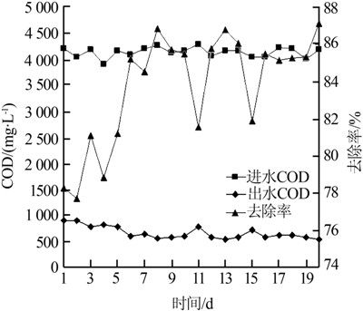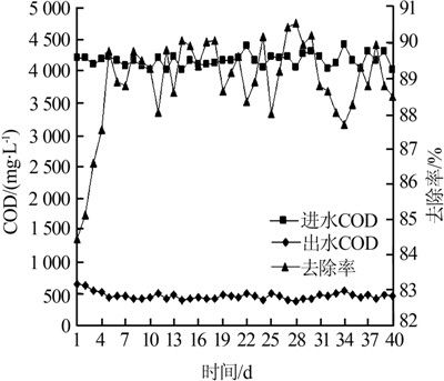 圖 4 按4∶3∶3投加菌劑對COD的去除效果