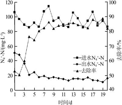 圖 3 按2∶4∶4投加菌劑菌劑對氨氮的去除效果
