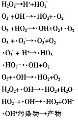 O3/H202是一種有效降解廢水中污染物的高級氧化技術,可直接將污染物氧化為CO2和H2O,其反應機理[7]如下: