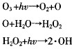 O3/UV技術也是人們研究較多的一種臭氧類高級氧化技術,O3/UV高級氧化過程可以通過O3,的光解引發,生成中間產物H2O2,H2O2在O3/UV降解某些有機物(主要是指芳族類和帶不飽和鍵的化合物)過程中起到了至關重要的作用,可直接導致體系形成O3/H2O2和H2O2/UV這2種高級氧化技術[11-12]。其反應機理[13]可表示為: