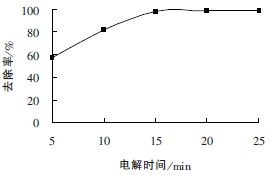 pH 值過高時,電解溶液中大量存在的OH-與Fe2+反應生成Fe(OH)2,繼而極易被氧化成Fe(OH)3,降低了催化作用,減緩了·OH 的生成,根據聚合物的去除情況,pH 值調節至4.0 最佳。具體參見http://www.bnynw.com更多相關技術文檔。