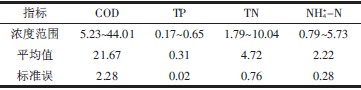 注:表中COD、TP、TN、NH+4-N 樣本數分別為15、18、16、18,下同。