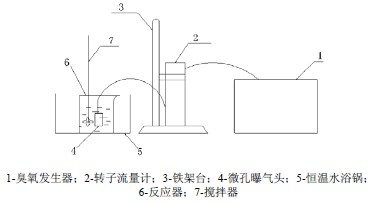 圖1 臭氧預氧化/混凝工藝降解活性藏青印染廢水的反應裝置