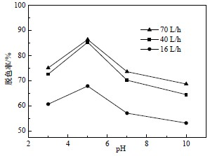 Fig.3 Determination of the best value of pH and the flow rate of ozone of ventilation
