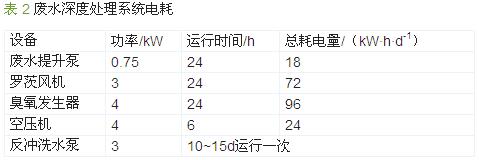該系統每天總耗電量為162 kW·h,以電價0.7 元/(kW·h)計,電費共113.4 元/d。以每天處理60 m3 廢水計,則廢水處理費用為2.45 元/ m3。在冬天水溫較低的1~2 個月,需從附近電廠購買蒸汽,噸水成本需增加約2~3 元。若進水水質較好,臭氧發生設備無需開啟,則可降低成本,廢水處理費用約為1.05 元/m3。此外,最終出水達到生活雜用水標準后可降低廠區消防和綠化用水費用,具有經濟效益。具體參見http://www.bnynw.com更多相關技術文檔。
