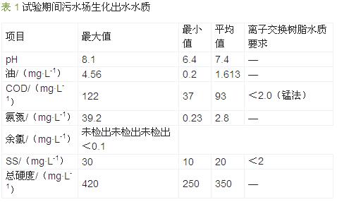 綜合考慮離子交換樹脂的水質要求與污水回用雙膜系統運行的穩定性,原水中應去除的主要污染物是COD、氨氮、油、懸浮物、總硬度。
