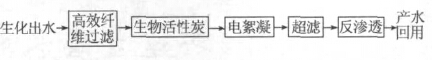 石化行業是我國工業用水大戶,大幅降低煉化企業的取水和排污總量,可以有效解決石化行業發展水資源短缺和環保容量制約問題,并創造較好的經濟效益、社會效益與環境效益。筆者采用高效纖維過濾〔1, 2〕+生物活性炭+電絮凝+超濾+反滲透工藝處理某石化企業污水場生化出水,產水回用作脫鹽水站補水。針對該污水含有一定有機物、硬度、鹽的特點,利用生物活性炭〔3〕降低廢水中有機物,并在電絮凝工藝中〔4〕控制廢水pH 提高對結垢離子的去除效果。經該組合工藝處理后,廢水 中的有機污染物去除率為30%,除油率為50%,總硬度去除率為35%,保證預處理出水達到膜前的進水水質要求,進而確保了超濾+反滲透系統的穩定運行。