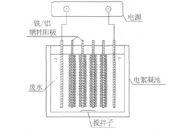 電絮凝法處理廢水是利用鋁或鐵陽(yáng)極溶出,原位生成高活性的多形態(tài)聚鋁或聚鐵絮凝劑,將水體中污染物微粒聚集成團(tuán)并沉降或氣浮分離的除污工藝〔1〕。電絮凝法具有效率高、泥量小并易于固液分離、無(wú)需外加藥劑、二次污染少、操控和設(shè)備維護(hù)簡(jiǎn)單、易于自動(dòng)控制和最終出水中總?cè)芄蹋═DS)小等優(yōu)勢(shì),現(xiàn)已逐漸成為處理重金屬、氟離子以及染料等無(wú)機(jī)、有機(jī)廢水的有效方法。