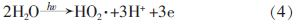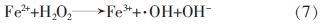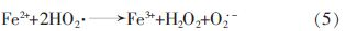 在UV/Fe0體系中,F(xiàn)e2+可以由Fe0 氧化得到,而H2O2由UV照射H2O 產(chǎn)生激發(fā)態(tài)HO2·而得到,由此在UV/Fe0 體系中形成Fenton 反應(yīng),并且無需另外添加H2O2,在這過程中紫外燈作為氧化Fe0 和產(chǎn)生H2O2的能源。