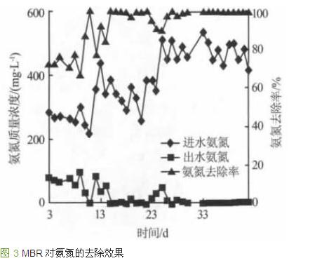 MBR 對氨氮的去除效果見圖 3。