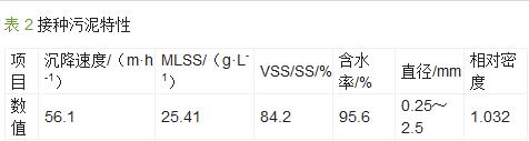 接種污泥取自廣東省某食品廠正在運行的UASB 的厭氧顆粒污泥,經過篩濾和淘洗,去除雜質。其外觀接近球形,色澤烏黑,沉降性能良好,主要性能指標見表 2。污泥接種量7 L,約為反應器有效容積的1/3,各格室污泥接種量比V1∶V2∶V3=3∶2∶2。