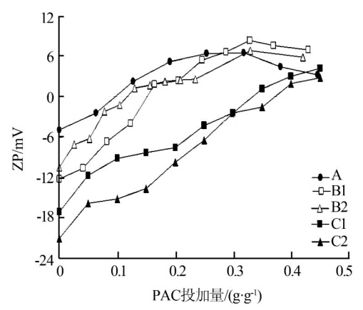 圖 4 污泥顆粒表面ZP隨PAC投加量的變化