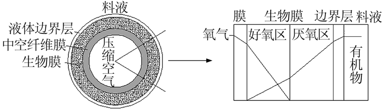 MABR系統的生物膜形成后分為好氧層和厭氧層,兩個生物功能層協同發揮MABR系統的生化作用(如圖 2所示)。