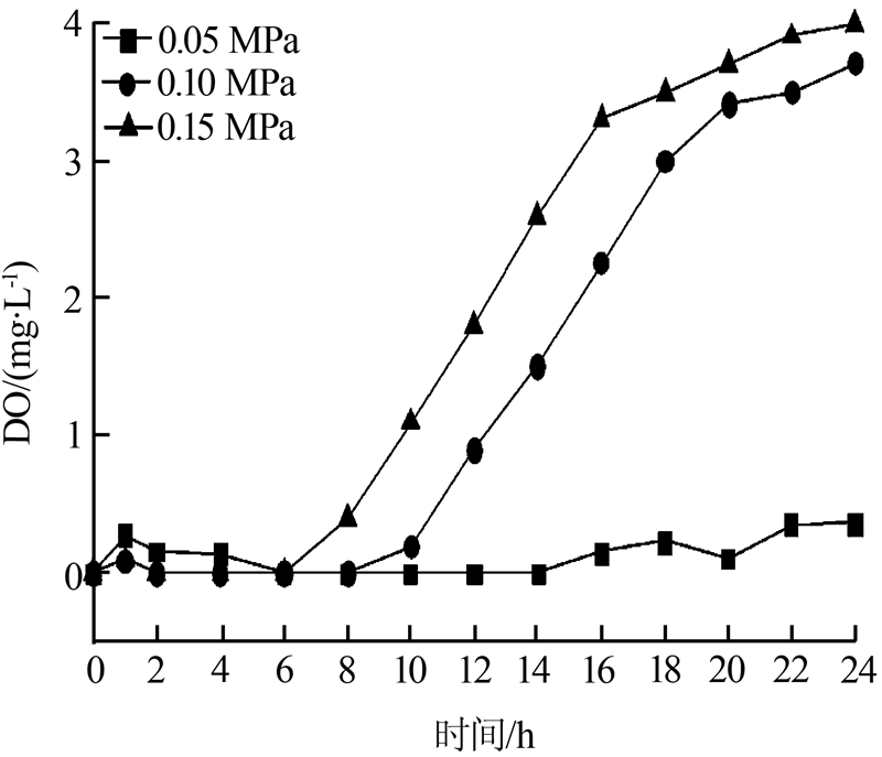 圖 4 不同曝氣壓力下料液中DO隨時間變化