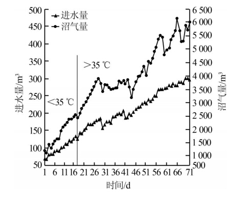 圖 2 進水量與沼氣量變化情況