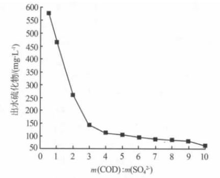 圖 3 m(COD)∶m(SO42-)對出水硫化物濃度的影響
