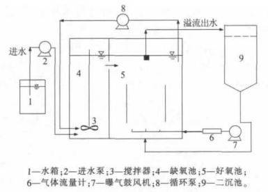 試驗中 A/O 反應器中使用的污泥取自成都市第二污水處理廠某中試 MBR 好氧池 ,再經過試驗用水馴化 15 d 后作為接種污泥 。