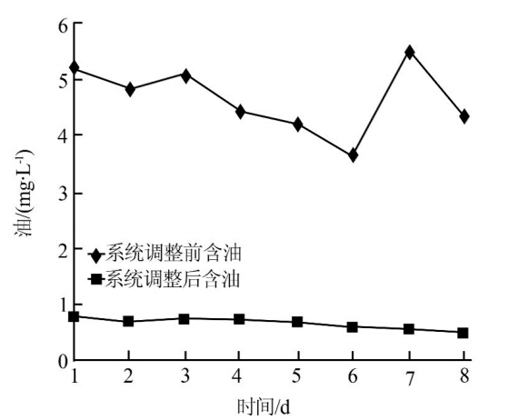 循環水控制指標要求:pH為7~9,油≤10 mg/L,懸浮物≤20 mg/L,濁度≤20 mg/L。