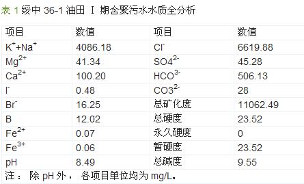 對綏中36-1油田Ⅰ期含聚污水進行了水質全分析,結果見表1。