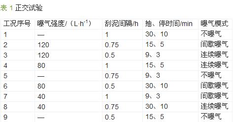 結(jié)合考慮綜合指標(biāo)Z、出水水質(zhì)去除效果和穩(wěn)定性等因素,選擇工況7為最優(yōu)工況,即:膜池內(nèi)曝氣強(qiáng)度40L/h,膜池刮泥間隔1h,出水抽吸泵抽、停時(shí)間9、3min,膜池采用間歇曝氣。具體參見(jiàn)http://www.bnynw.com更多相關(guān)技術(shù)文檔。