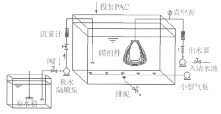 某自來(lái)水廠水源水受到微污染,為保證出水水質(zhì)達(dá)到《生活飲用水衛(wèi)生標(biāo)準(zhǔn)》(GB5749—2006)要求,需對(duì)現(xiàn)有的常規(guī)處理工藝進(jìn)行升級(jí)改造。改造工程采用新型水處理集成技術(shù)———PAC-MBR,即投加粉末活性炭(PAC)的膜生物反應(yīng)器(MBR)組合工藝,該工藝具有水質(zhì)調(diào)節(jié)能力良好、污染物去除范圍廣、設(shè)備緊湊、易于自動(dòng)控制與一體式管理等優(yōu)點(diǎn),故可形成性能可靠、操作簡(jiǎn)單、適合縣鎮(zhèn)管理?xiàng)l件的飲用水安全保障技術(shù)。