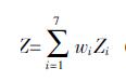 本試驗(yàn)確定綜合指標(biāo)為Z,指標(biāo)層(C)中各指標(biāo)Ci在體系中的權(quán)重分配為wi,采用賦權(quán)加法得到綜合指標(biāo)公式: