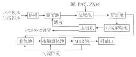 該企業(yè)廢水首先經(jīng)過(guò)格柵處理,除掉魚(yú)渣、包裝帶等較大的懸浮物,以保證后續(xù)處理的穩(wěn)定運(yùn)行及提升泵的運(yùn)轉(zhuǎn);出水進(jìn)入調(diào)節(jié)池進(jìn)行均質(zhì)均量,調(diào)節(jié)廢水的水質(zhì)水量,避免對(duì)后續(xù)生化處理造成較大的負(fù)荷變化,保證生化處理正常運(yùn)行;均質(zhì)均量后,泵入絮凝反應(yīng)池,充分反應(yīng)后的廢水流入沉淀池進(jìn)行泥水分離,去除大部分SS和部分COD、氨氮,污泥接至污泥池,上清液順序流入兼氧池和接觸氧化池,在兼氧池中大分子有機(jī)物被兼氧菌水解為易降解的小分子有機(jī)物,降低了廢水中的有機(jī)物濃度,并提高可生化性;接觸氧化池內(nèi)的好氧菌不斷攝取廢水中的有機(jī)物作為營(yíng)養(yǎng)加以吸收,通過(guò)代謝反應(yīng),小分子和溶解性有機(jī)物被降解,一部分被氧化為最終產(chǎn)物CO2和H2O,另一部分轉(zhuǎn)化為新的有機(jī)體使細(xì)胞增殖。廢水隨后進(jìn)入MBR系統(tǒng),由于膜的高效分離作用,分離效果遠(yuǎn)好于傳統(tǒng)沉淀池,能夠穩(wěn)定獲得優(yōu)質(zhì)的出水水質(zhì)。