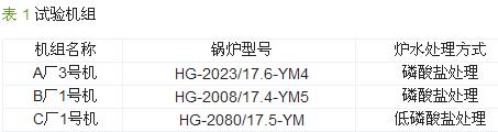 試驗機組名稱、型號及試驗前爐水處理方式見表1。
