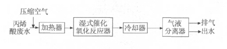 催化濕式氧化技術〔5〕是在傳統濕式氧化基礎上加入催化劑的一種處理廢水的方法,相對于傳統濕式氧化技術,它的反應溫度以及反應壓力較低,反應分解能力更高,對設備腐蝕性小、運行成本低。王向榮等〔6〕采用催化濕式氧化技術處理丙烯酸廢水,進水COD在40g/L,出水COD<100mg/L,處理費用在100~200元/t。工藝流程如圖2所示。