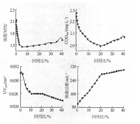 2.1 回用比對(duì)濁度的影響
