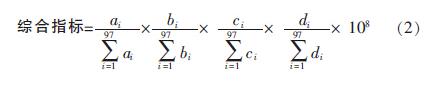 沉后水濁度、CODMn、UV254 及細(xì)菌總數(shù)等指標(biāo)越小說明相對(duì)應(yīng)的回用比越合理。為了找出最佳回用比,在此引入綜合指標(biāo)這一概念。綜合指標(biāo)是將上述幾項(xiàng)指標(biāo)綜合一起考慮,計(jì)算原理如下:先將沉后水濁度、CODMn、UV254 及細(xì)菌總數(shù)采用均值法去量綱;然后將對(duì)應(yīng)相同回用比下的各無量綱指標(biāo)值相乘。
