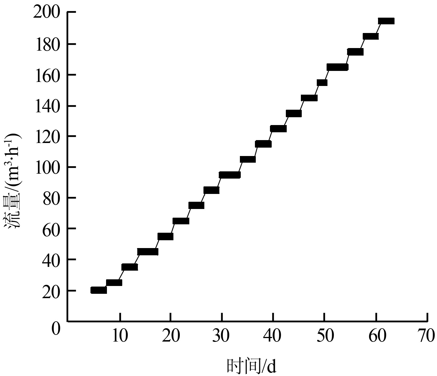 根據試驗用水水質特征,采用連續進水的方式向反應器進料,通過逐漸增加進水水量來提高反應器的負荷。反應器的快速啟動運行方案為:前4天為反應器內厭氧污泥的適應階段,不增加進水量。從第5天開始,每3天為一個周期,水量從20m3/h開始,在反應器穩定運行的前提下,每個周期水量增加5~10m3/h,直至達到195m3/h。
