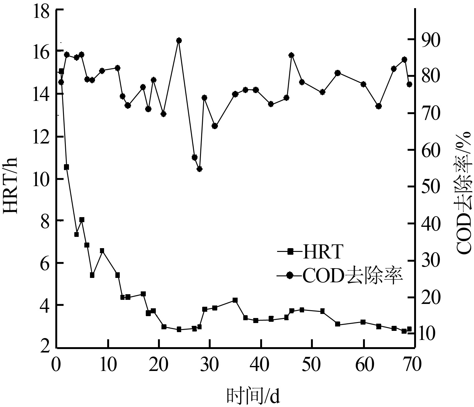 2.1水力停留時間(HRT)對COD去除率的影響