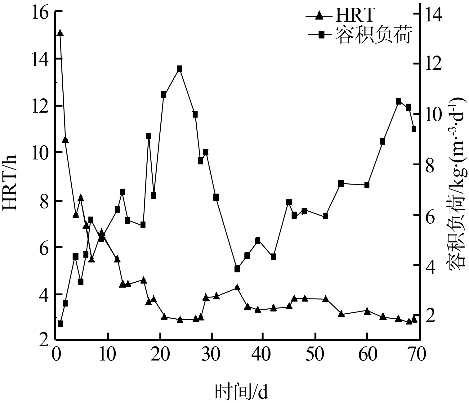 2.3反應器容積負荷與HRT變化