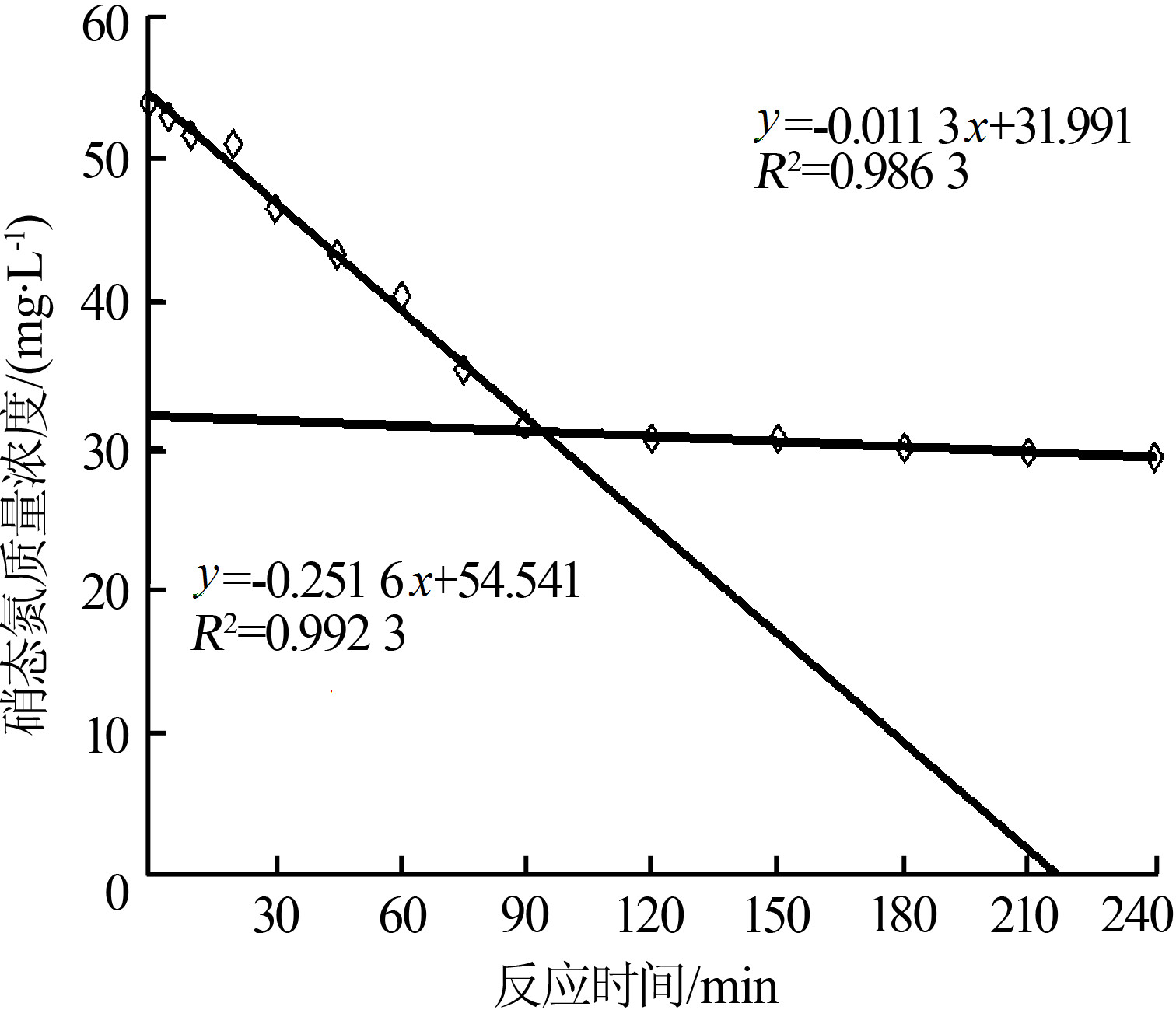 2.1.1反硝化過程硝態氮變化情況