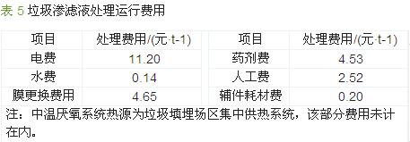 本滲濾液處理工程總投資約1 209萬元,其中設備購置費968萬元,土建工程費用141萬元,安裝及調試費用58萬元,其他費用42萬元。本項目耗電量0.8 kW·h/m3,耗水量0.04 m3/m3。按年運行365 d、人均工資4萬元/a計,滲濾液處理費用為23.24元/m3,主要費用情況見表 5。具體參見http://www.bnynw.com更多相關技術文檔。