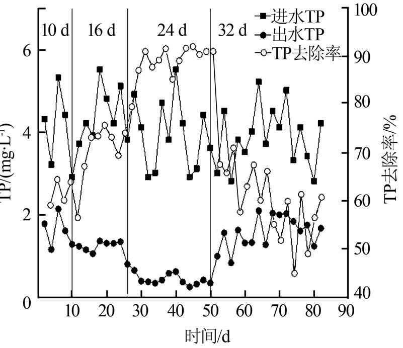 (2)SRT既不能過大導致系統(tǒng)內(nèi)有機負荷變低,又不能過小致使有機負荷過高,SRT=24 d時,除磷效果最佳,TP平均去除率為89.66%,TP出水質(zhì)量濃度為0.23~0.98 mg/L。