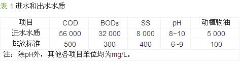 (1)采用一體化酸析裝置可以將廢水中溶于水的油脂分離出來(lái),并予以去除,有效降低后續(xù)工段的處理負(fù)荷。