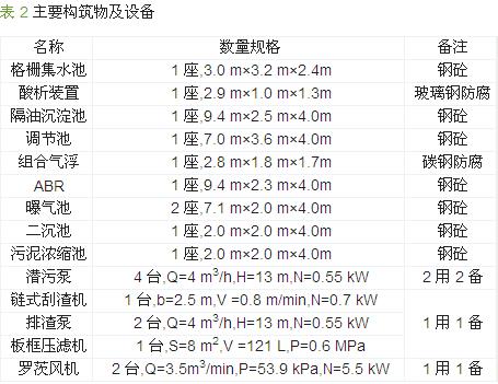 主要構(gòu)筑物、設(shè)備選型見表 2。