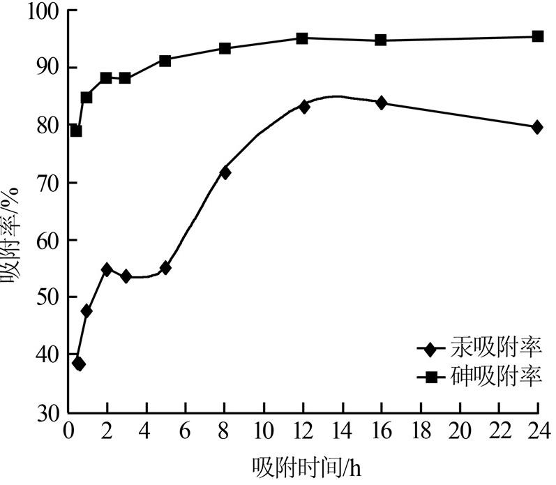 圖 2 吸附時間對剩余污泥吸附汞和砷的影響
